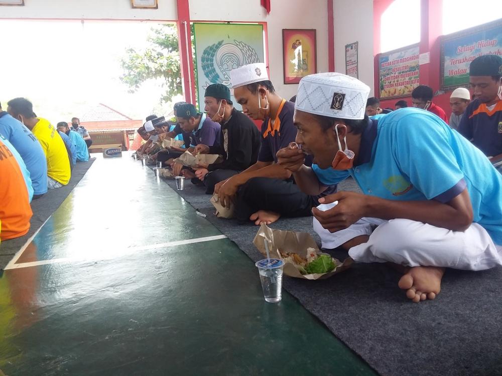 Sejumlah Warga Binaan Pemasyarakatan (WBP), makan bersama dengan pejabat Rutan di Aula Rutan Kelas IIB Kabupaten Batang, Senin 3/8/2020). Kepala Rutan Batang Rindra Wardhana mengatakan, momentum makan bersama saat Iduladha dimanfaatkan para pejabat dan pegawai untuk lebih mempererat silaturahmi serta menghibur WBP yang lama tak bertemu keluarga saat pandemi Covid-19. MC Batang, Jateng/Heri/Jumadi