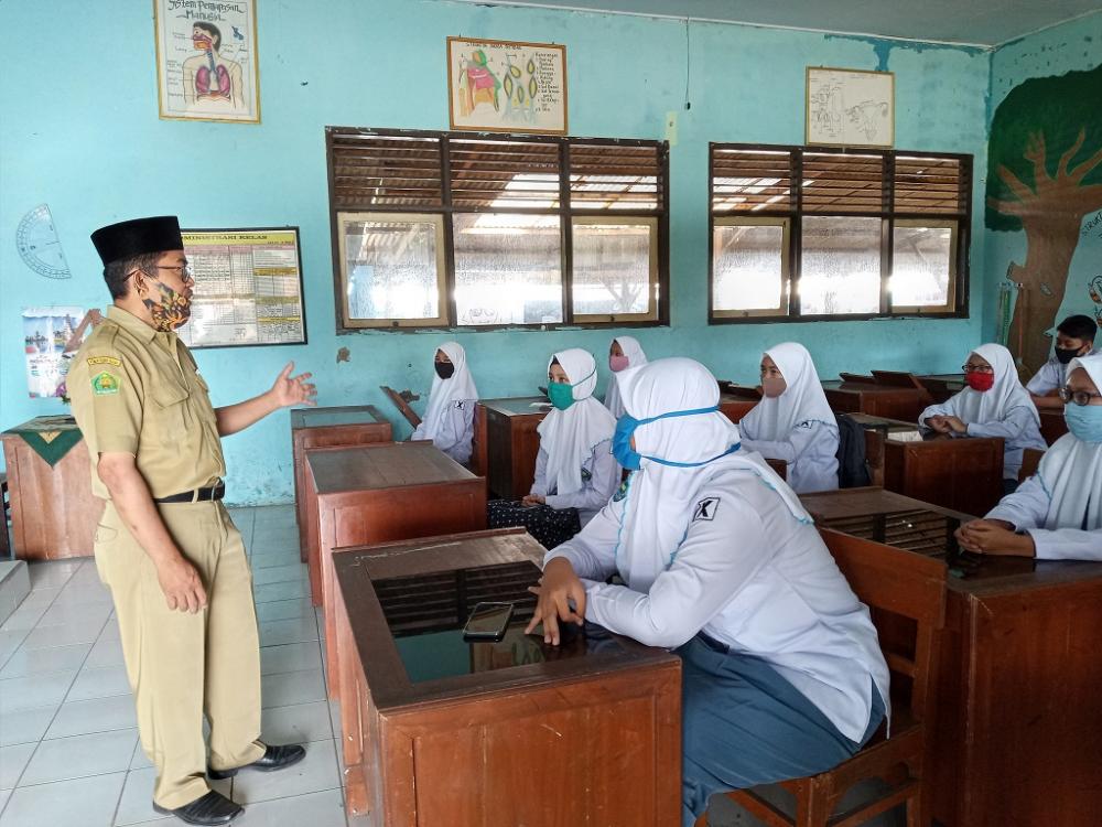 Wakil Kepala Bidang Kehumasan Madrasah Aliyah Negeri (MAN) Batang Dwi Haryono (kiri), menyampaikan imbauan kepada peserta didik sebelum pembagian kuota di Ruang kelas MAN Kabupaten Batang, Senin (5/10/2020). Haryono mengimbau, agar kuota sebesar 30 Gigabyte tidak digunakan untuk bermain game online maupun telepon, melainkan hanya untuk kepentingan pembelajaran daring. MC Batang, Jateng/Heri/Jumadi