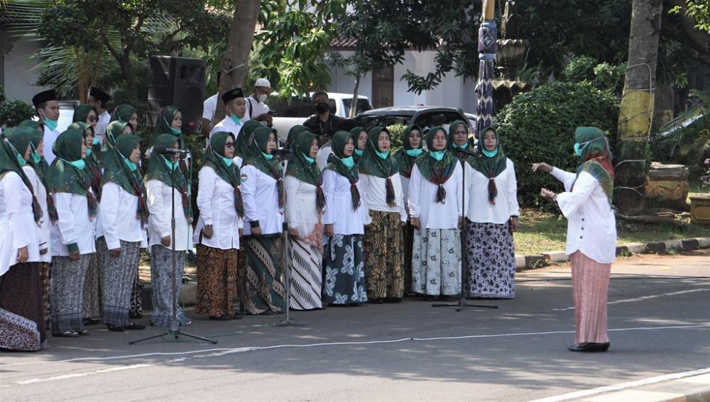 Tim paduan suara, menyanyikan lagu mars santri saat Upacara Hari Santri di halaman Pendopo, Kabupaten Batang, Jumat (22/10/2021). Upacara Hari Santri Nasional diikuti oleh perwakilan Nahdatul Ulama (NU), Muhammadiyah, Lambaga Dakwah Islam Indonesia LDDI dan Rifaiyah. MC Batang, Jateng/Roza/Jumadi