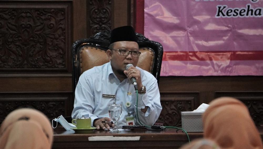 Kepala Kantor Urusan Agama (KUA) Kabupaten Batang Abdullah Najib, memberikan sambutan dalam peringatan HUT Ke-22 Dharma Wanita Persatuan di Aula Bupati, Kabupaten Batang, Senin (13/12/2021). Abdullah Najib mengatakan, program mediasi atau konsultasi dari KUA Kabupaten Batang dapat menyelesaikan permasalahan rumah tangga dengan baik. MC Batang, Jateng/Roza/Jumadi