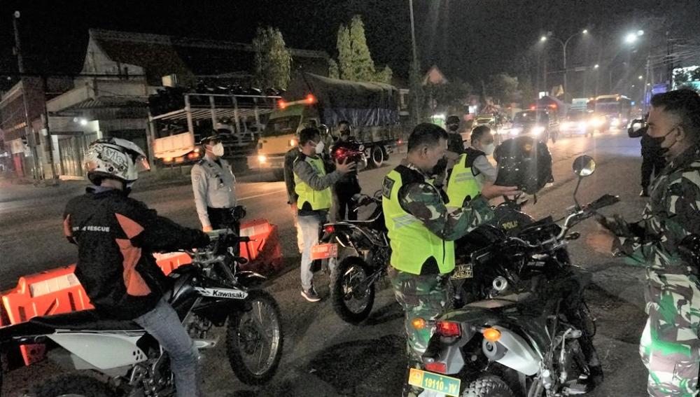 Bupati Batang Wihaji (ketiga kiri), bersama Forkopimda melakukan patroli pemantauan malam Natal di Alun-Alun Batang, Kamis (24/12/2021). Bupati Batang mengatakan, patroli pemantauan malam Natal dilakukan di Gereja Santo Yusup juga berkeliling ke titik-titik pos yang sudah ditentukan termasuk perbatasan Exit Tol Kalibeluk dan pusat keramaian di Alun-alun Batang. MC Batang, Jateng/Roza/Jumadi