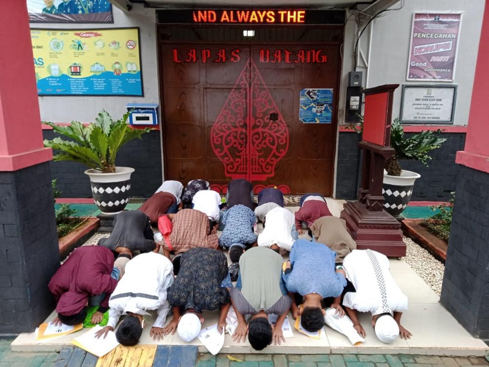 Sebanyak 18 Warga Binaan Pemasyarakatan (WBP) Lapas Batang serentak sujud syukur setelah mendapat Asimilasi COVID-19 di halaman Lapas Batang, Kabupaten Batang, Selasa (18/1/2022). Sujud syukur mereka lakukan sebagai tanda sukur dapat menghirup udara bebas di luar Lapas. MC Batang, Jateng/Jumadi