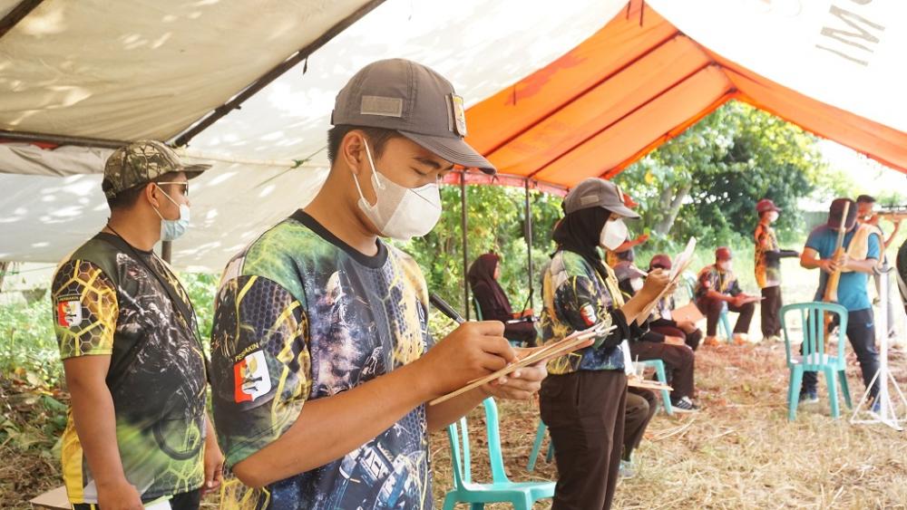Seorang panitia (kedua kiri), memberikan nilai kepada peserta dalam Kejuaraan Menembak Piala Bupati Cup Open Batang Heaven Of Asia tahun 2022 di Halaman Disnaker Kabupaten Batang, Sabtu (29/1/2022). Panitia mengatakan, untuk memberikan nilai menembak yaitu ketepatan pada sasaran dan jumlah yang ditembak. Peserta menembak dari Temanggung, Yogyakarta, Magelang, Pasuruan dan Papua. MC Batang, Jateng/Jumadi