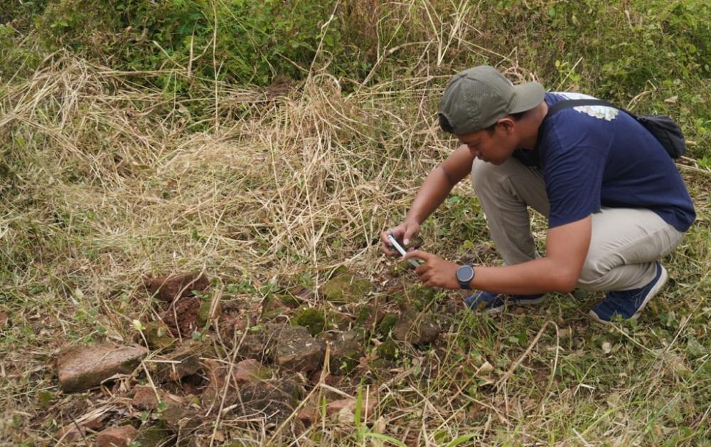 Seorang wartawan, mengambil gambar untuk runtuhan situs candi bata saat meninjau situs candi tertua di Desa Sawangan, Kecamatan Gringsing, Kabupaten Batang, Selasa (1/11/2022). Runtuhan situs candi bata salah satu sejarah pertama ditemukannya candi oleh Arkeolog bernama Veronique de Groot yang berasal dari warga Negara Prancis. MC Batang, Jateng/Roza/Jumadi